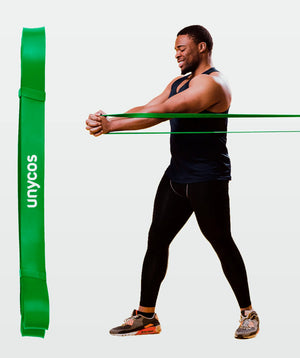 Goma elástica fabricada en látex amigable con la piel para evitar alergias y sensación de ardor en las muñecas o tobillos al estirarlas. Presenta un agarre natural, cómodo y seguro que facilita la práctica de numerosos ejercicios sin riesgos de deslizamientos incómodos.