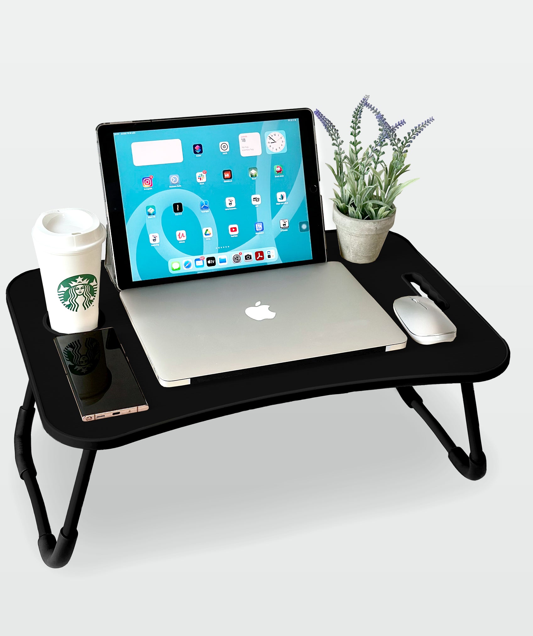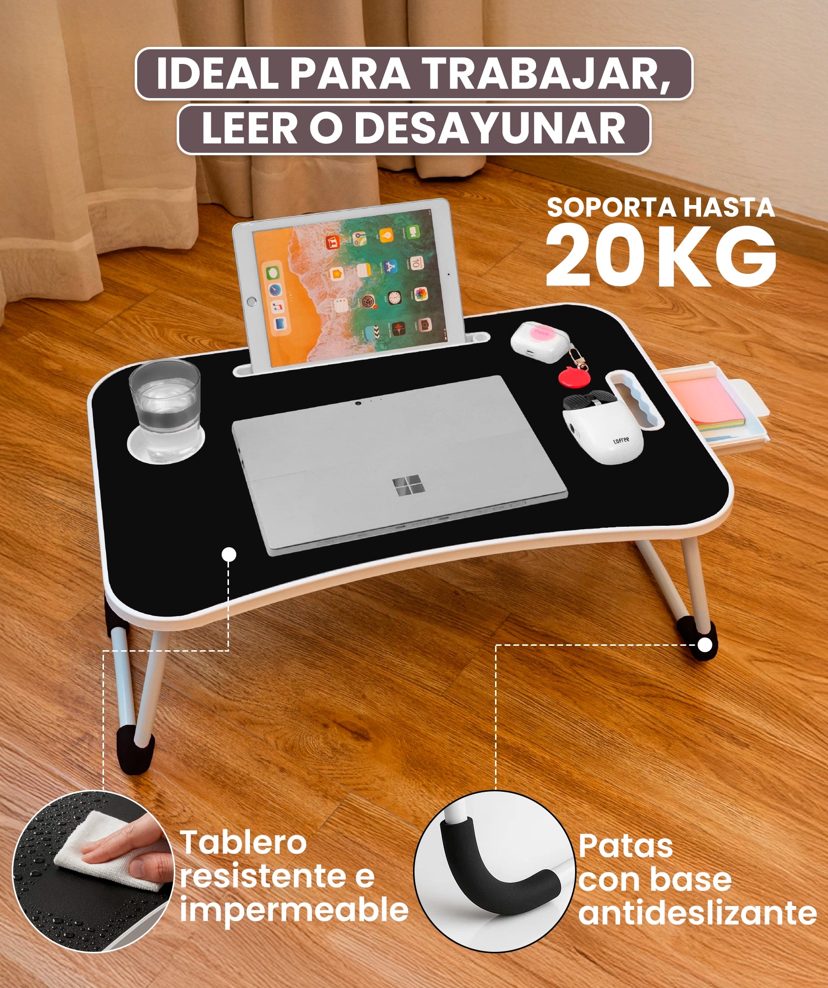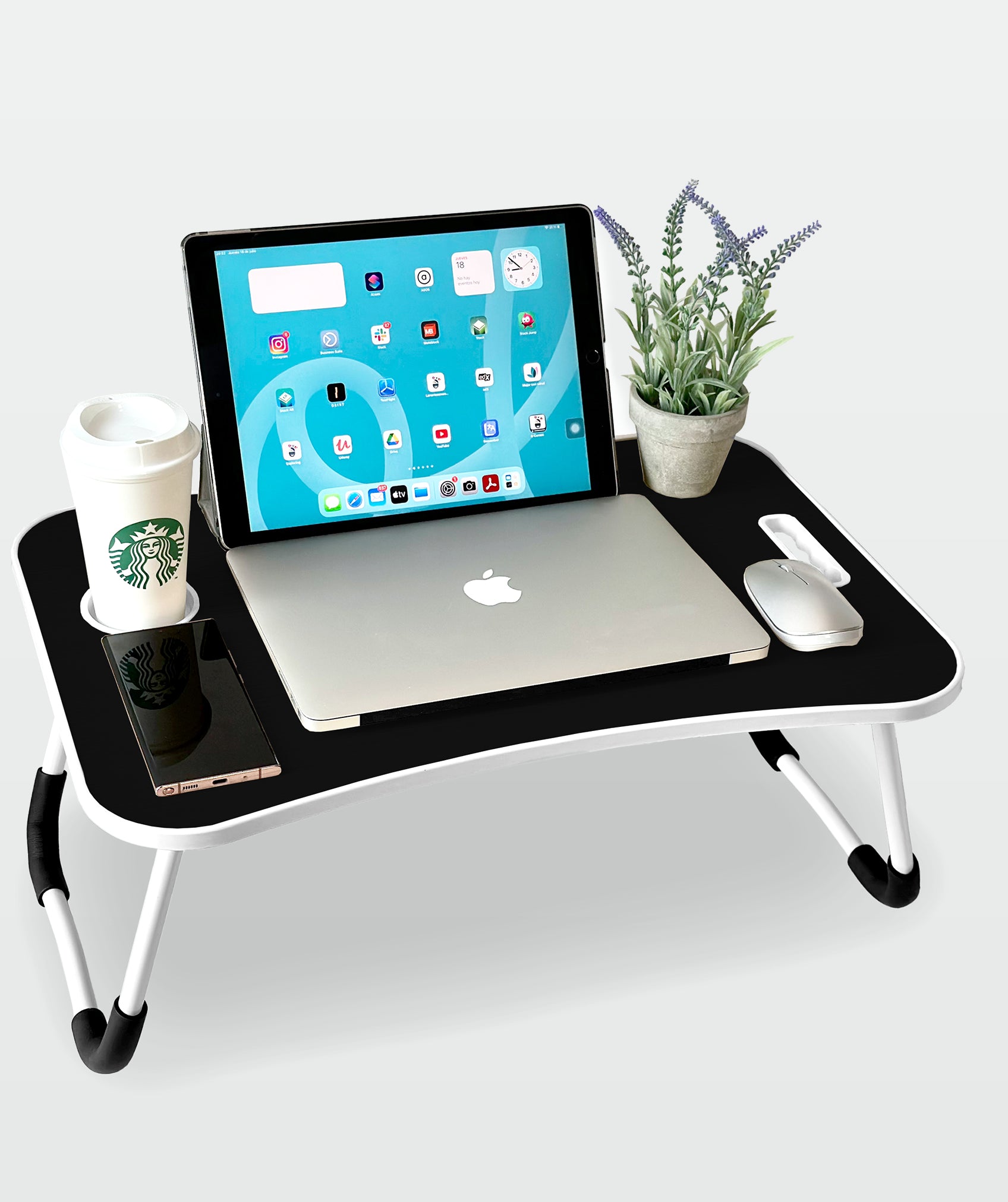 Bandeja plegable multiusos con cajón ergonómico, ideal para portátil y tablet