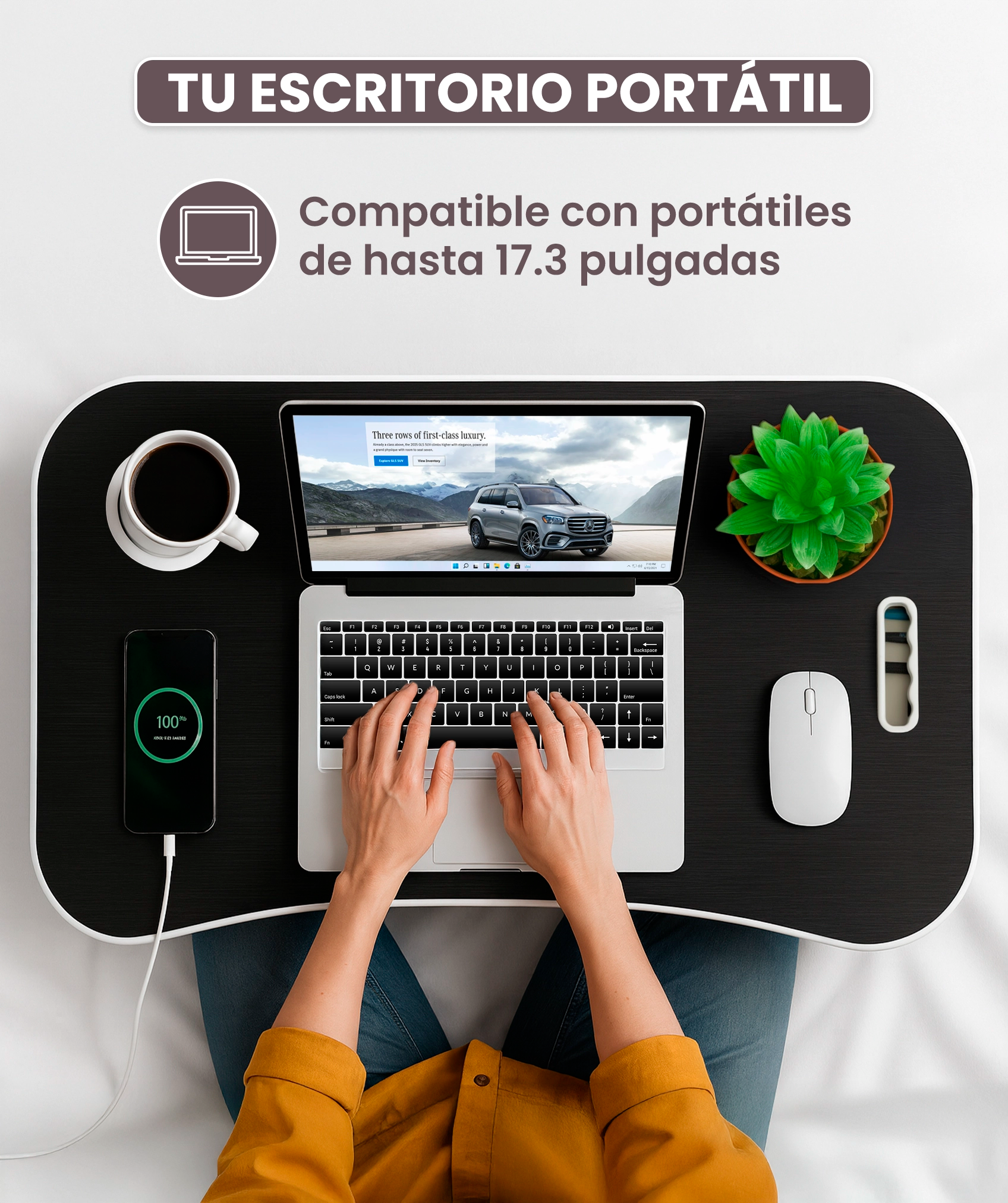 Con un tamaño de 60 x 40 x 26 cm, es ideal para desayunar, trabajar desde casa, disfrutar de una película en tu tablet o cualquier plan que puedas imaginar.