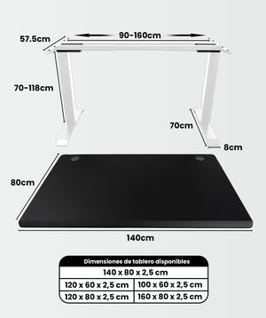 Diseñado para durar, nuestro escritorio eléctrico puede soportar hasta 120 kg. Ya sea que lo necesites para tu oficina profesional o tu espacio creativo en casa, este escritorio se adapta a tus necesidades y te acompaña en cada paso.
