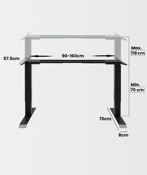 El escritorio de acero aleado permite ajustar la altura desde 70 cm hasta 118 cm; y regular el ancho de 90 cm a 160 cm, proporcionando un espacio generoso y ergonómico para cualquier silla de oficina. ¡Incluye un paso a paso en vídeo para armarlo de forma fácil y rápida!
