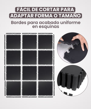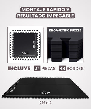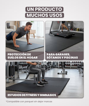 Cada pieza mide 60 x 60 x 1,4 cm y su diseño de puzzle permite una personalización práctica, adaptándose a cualquier tipo de suelo. La facilidad de ensamblaje las convierte en la elección perfecta para ajustarse a diversos espacios y necesidades.