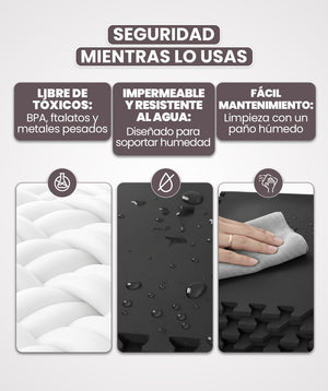 La superficie antideslizante confiere un agarre firme en cada movimiento, brindando estabilidad. Nuestro tapete fitness resulta cómodo, gracias a su material no tóxico, acolchado, suave al tacto y gentil con la piel.