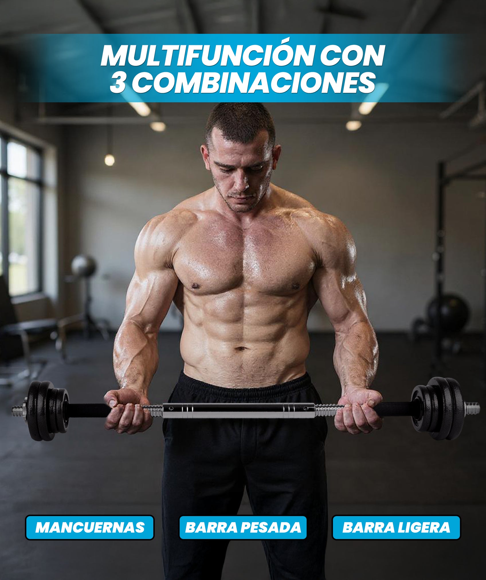 Con nuestras pesas versátiles, puedes definir, tonificar, fortalecer y aumentar tu masa muscular, ajustando la carga y repeticiones a tus objetivos personales.