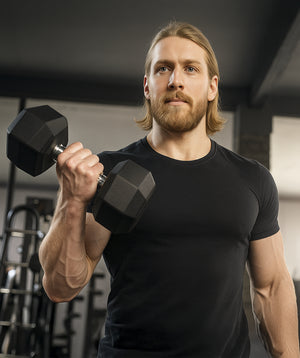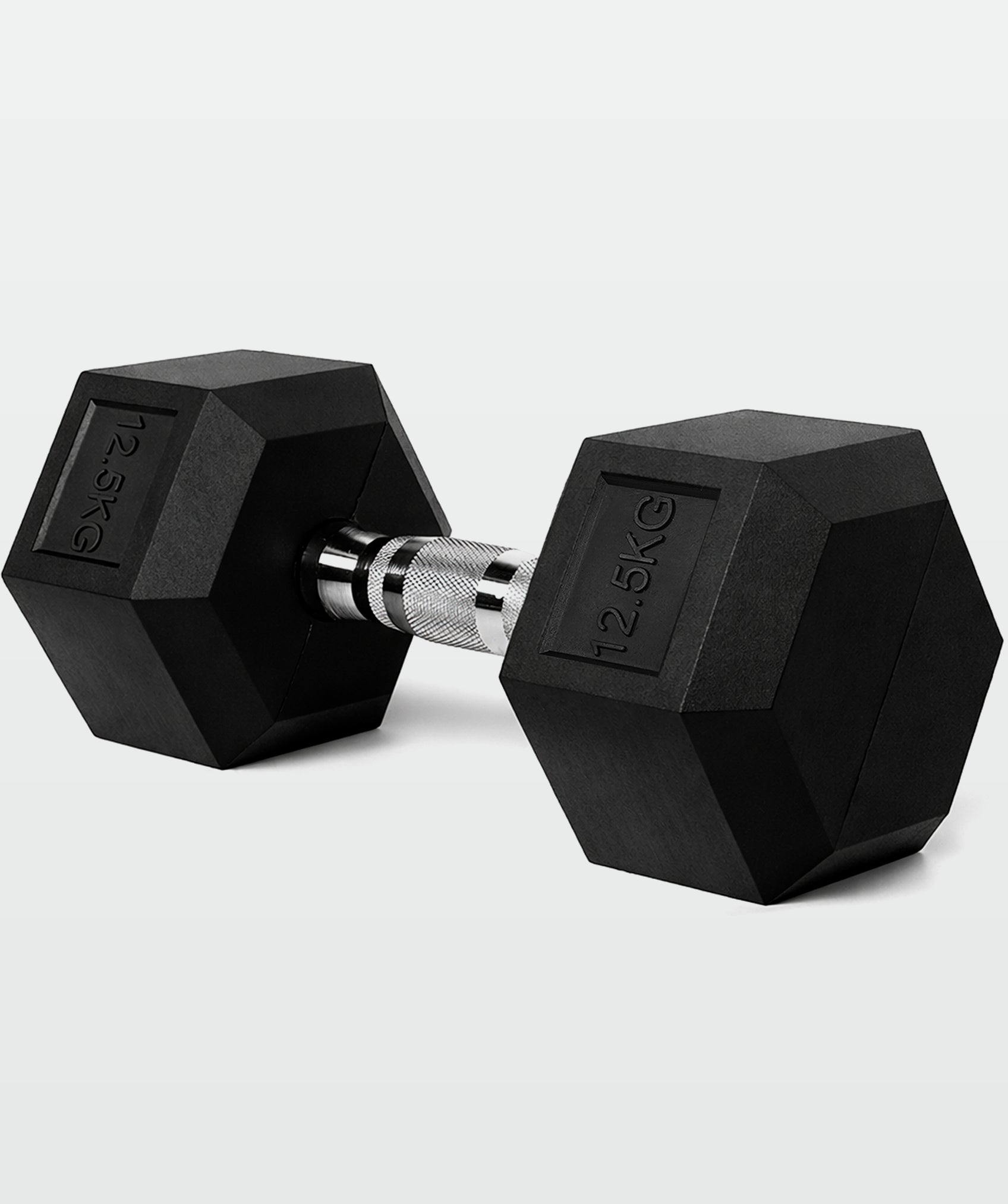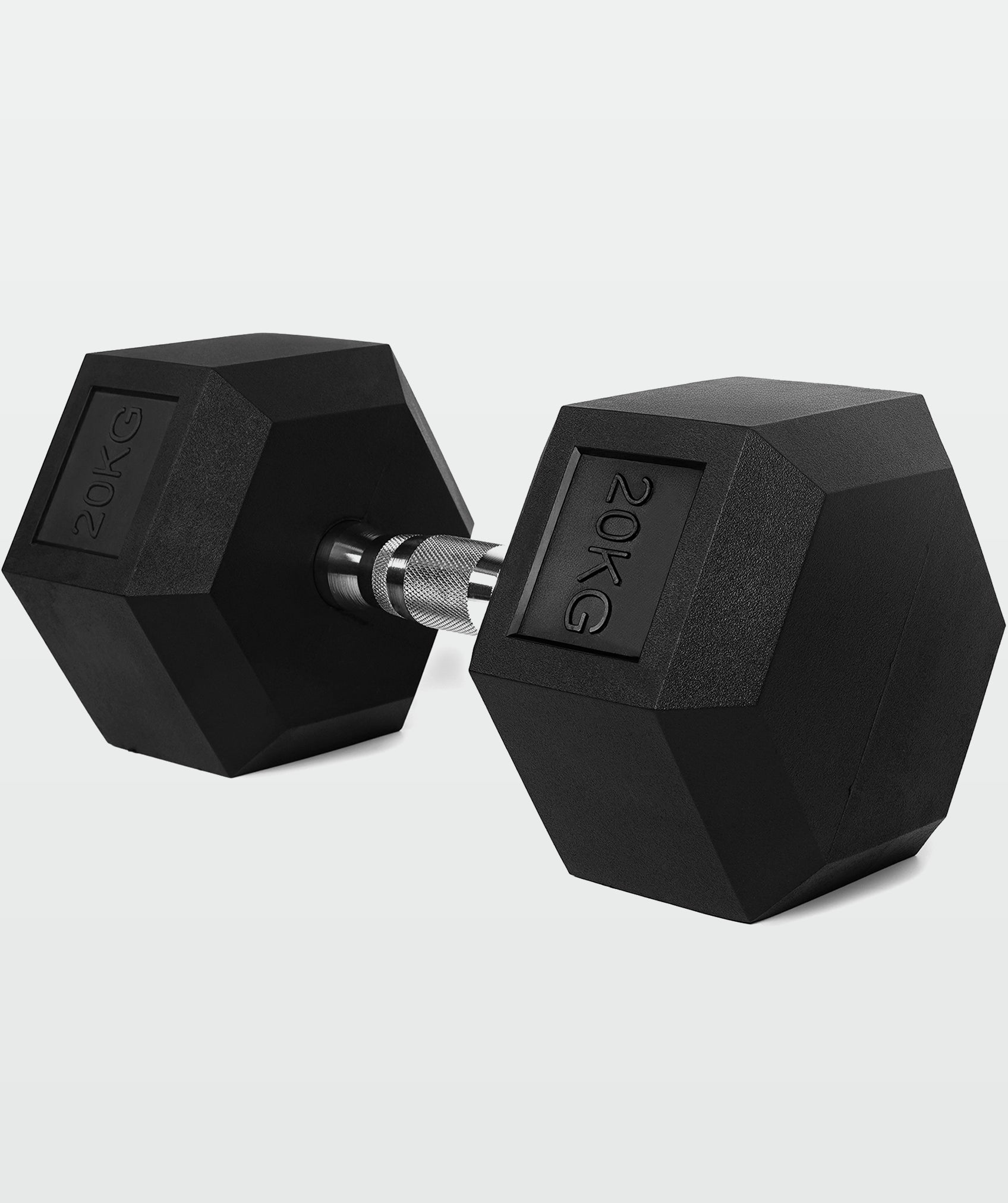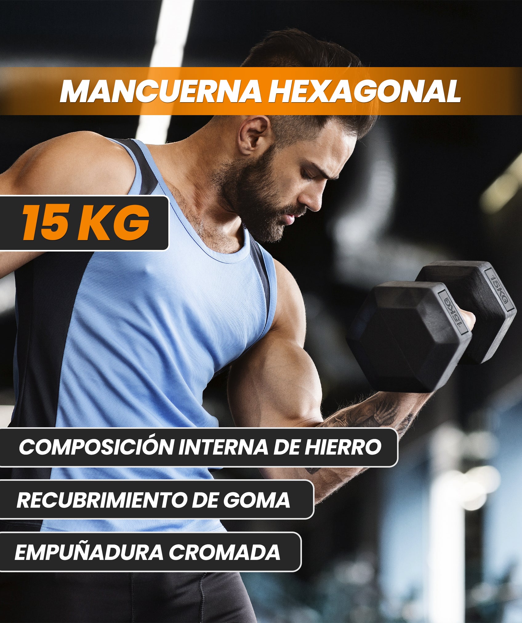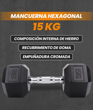 Mancuernas hexagonales con diseño de agarre cromado y goma