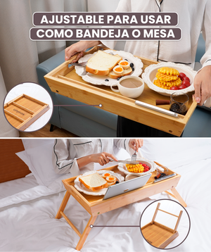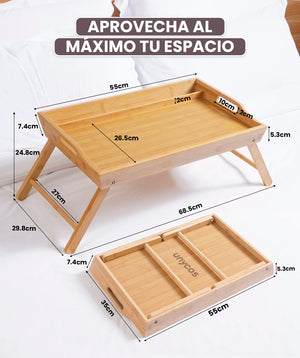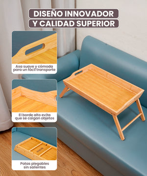 Una mesa multiusos diseñada para acompañarte en cada momento de tu vida. Ideal como soporte para tu ordenador portátil mientras trabajas o estudias desde la comodidad de tu cama o sofá. Además, se convierte en la bandeja perfecta para servir comidas, transportar aperitivos o disfrutar del desayuno en la cama.