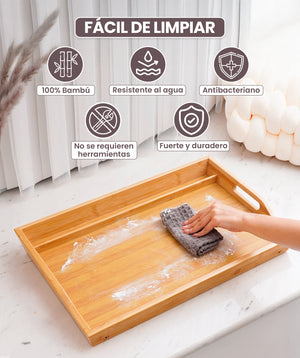 Fabricada al 100 % con madera de bambú de alta calidad, este material no solo es resistente al agua, sino también antibacteriano, amigable con el medio ambiente y garantiza una vida útil prolongada.
