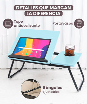 Su diseño plegable y reclinable te permite ahorrar espacio sin esfuerzo. ¡Guarda y lleva contigo tu espacio de trabajo en segundos! Además, el tablero ajustable en altura se adapta a tus necesidades, sin importar el propósito.