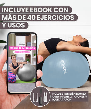 Se adapta como pelota de yoga, gimnasia, pilates y fitness, consiguiendo incidir en grupos musculares puntuales o en un desarrollo físico integral según se requiera. Incluye inflador.