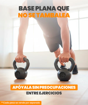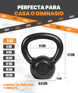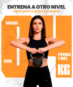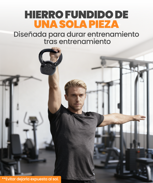 Fabricada en hierro sólido, nuestra Kettlebell es la elección perfecta tanto para profesionales como para principiantes. Permite fortalecer tus abdominales, bíceps, tríceps y cuádriceps de manera equilibrada, ofreciendo una ejercitación integral.