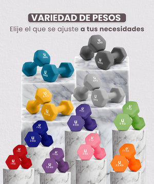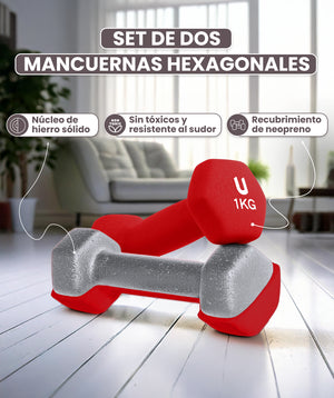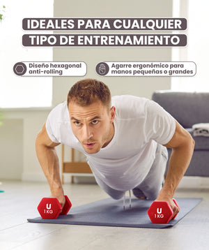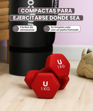 Set de 2 mancuernas fitness de neopreno 1-10Kg con diseño hexagonal