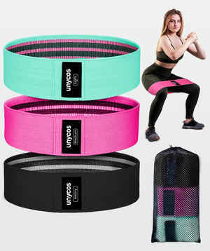Set de 3 gomas elásticas fabricadas en látex fiber, amigables con la piel para evitar alergias y sensación de ardor en las muñecas o tobillos al estirarlas.
