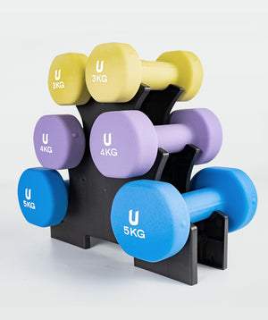 El juego cuenta con mancuernas de 3 kg, 4 kg y 5 kg, transformándose en un complemento perfecto para rutinas de ejercicios simples, aeróbicos, fitness, yoga, pilates y CrossFit.